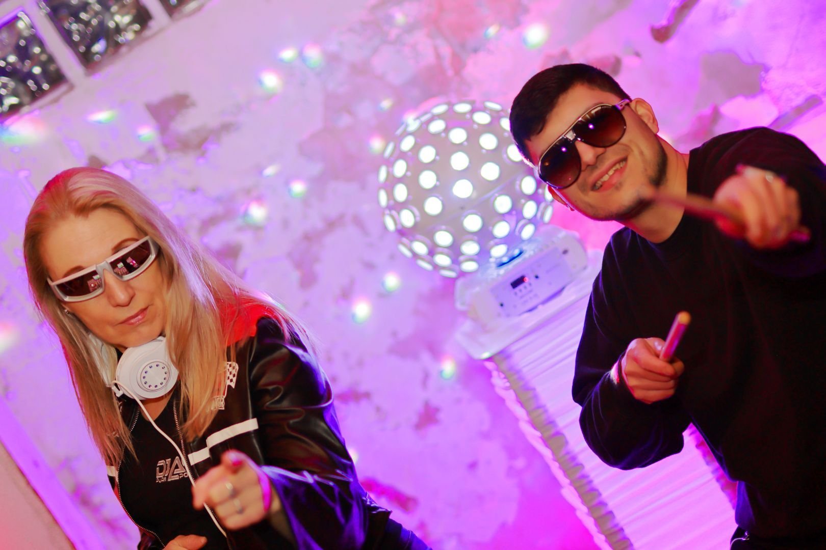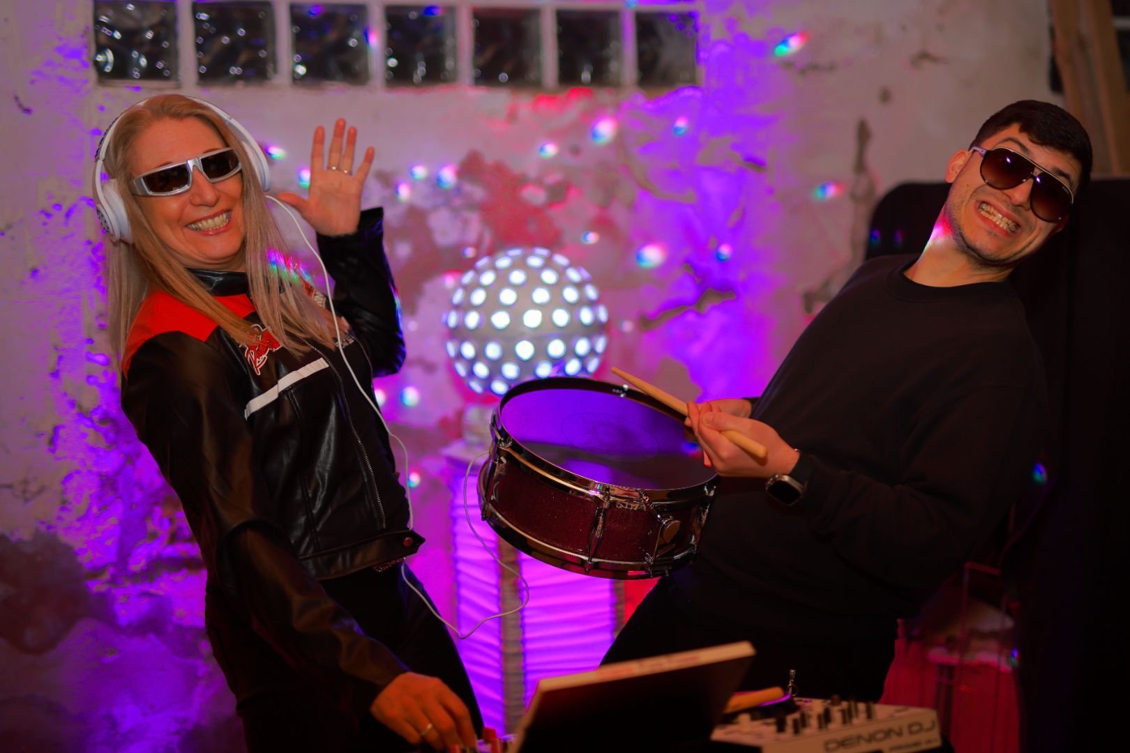 DJane Pure Power bringt mit ihren mitreißenden Sets das Publikum zum Tanzen, während der Schlagzeuger Aliyar,