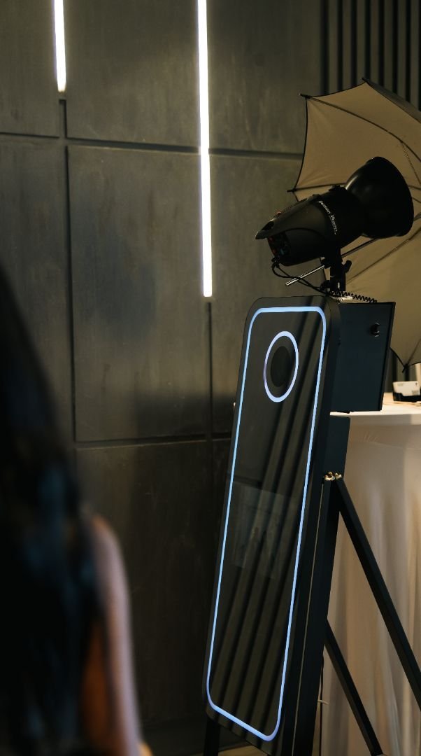 Die Magic Mirror Fotobox verbindet Entertainment mit Branding: interaktive Nutzerführung, hochwertige Fotos und optional Branding-Layouts (Logo, Claim, Event-Design). Ideal für Hochzeiten, Messen, Kundenveranstaltungen und Teamevents – für Reichweite, Leads und bleibende Erinnerungen.