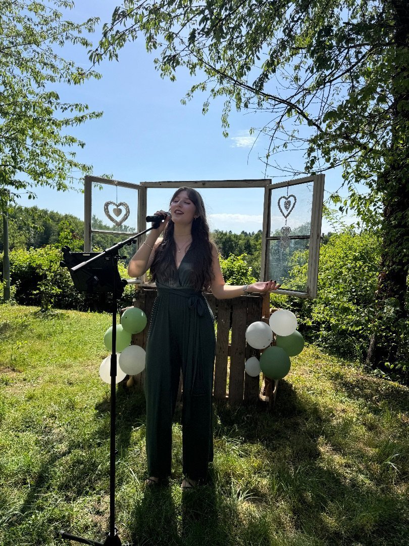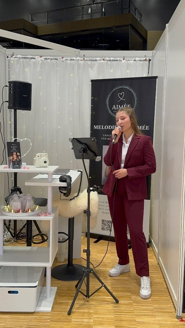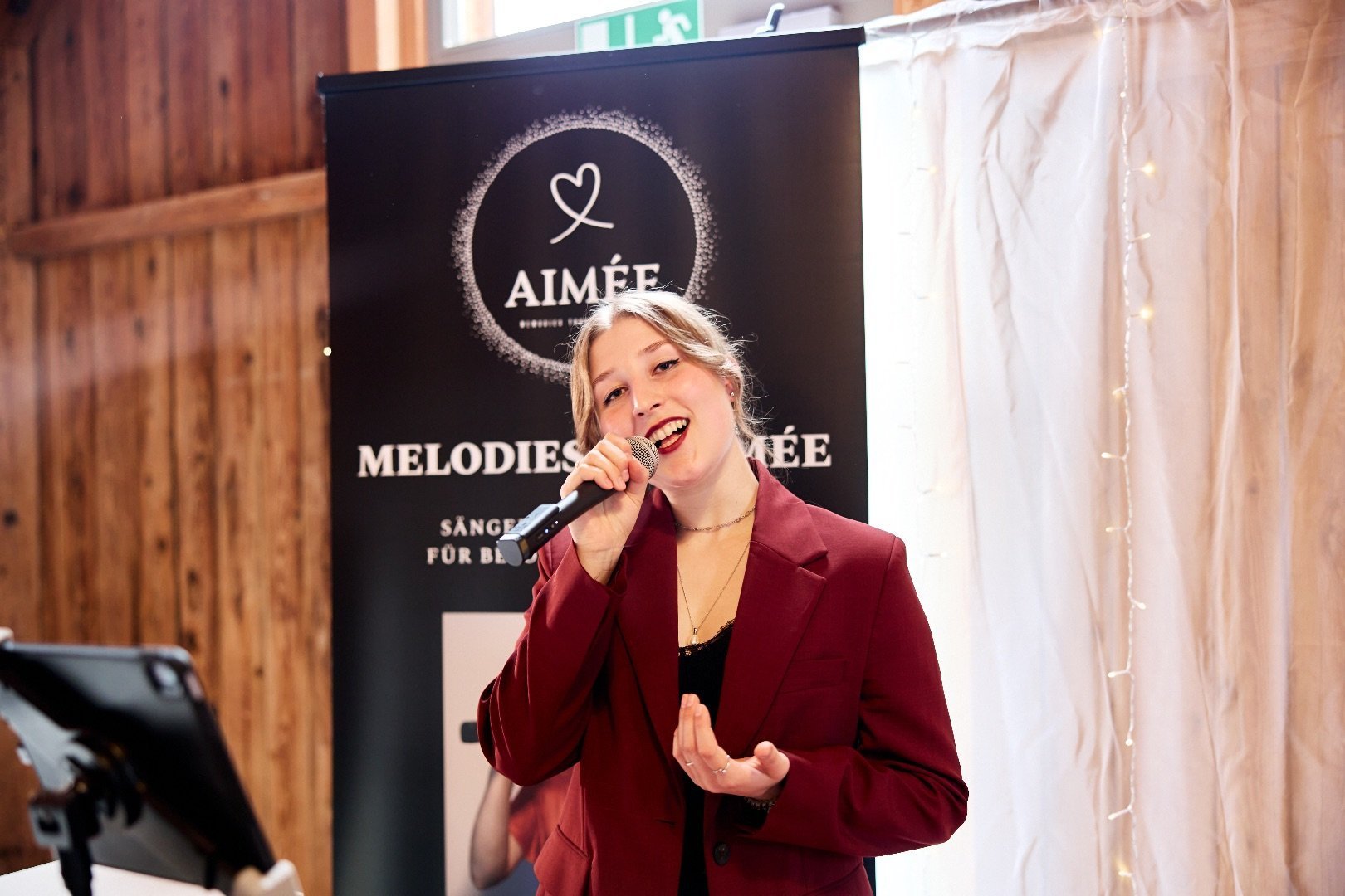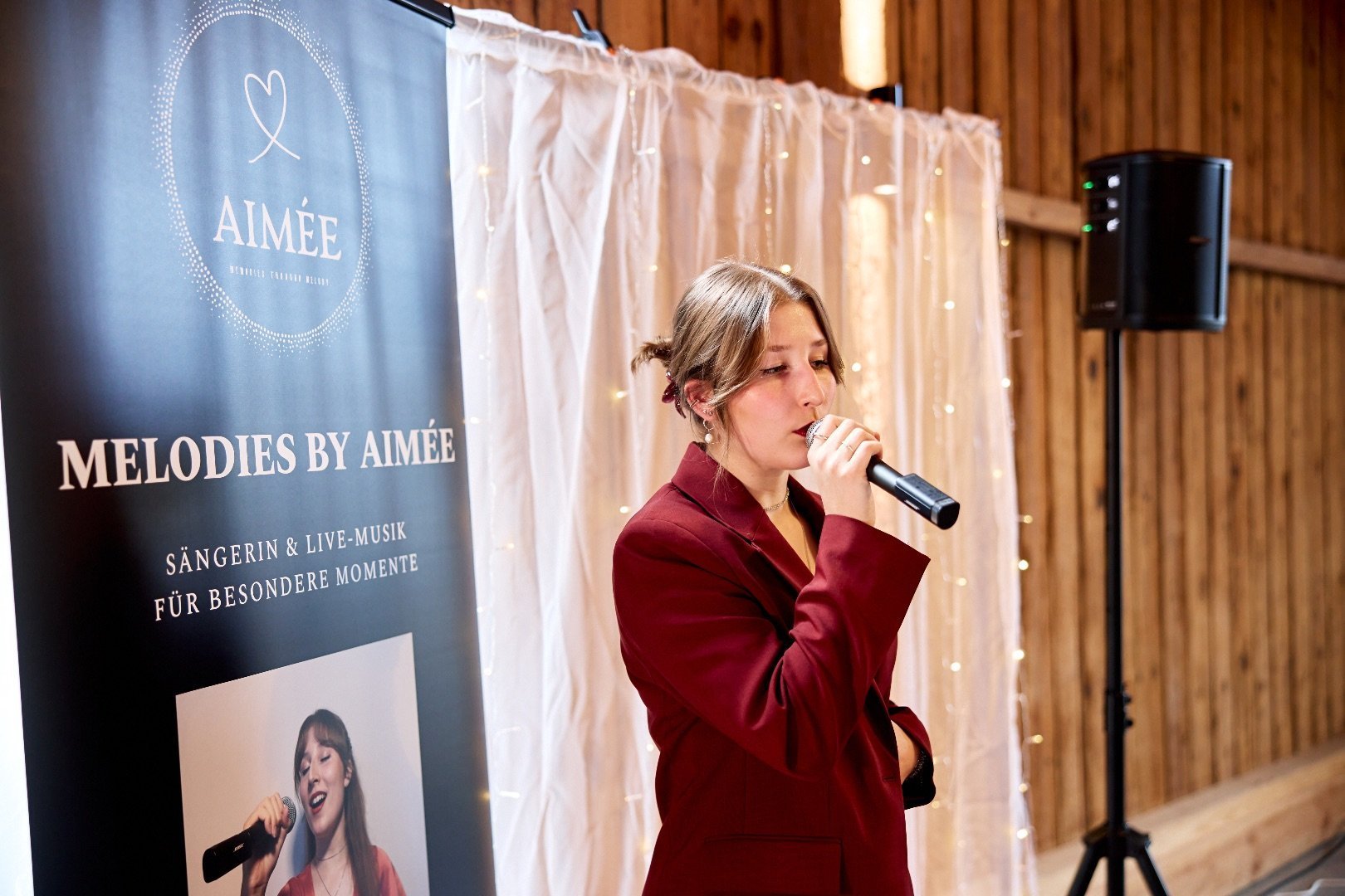 Ich bin Aimée (Instagram @melodiesbyaimee) und leidenschaftliche Sängerin. Nach meinem Motto „Memories through melody.“ umrahme ich Euren besonderen Moment mit emotionalem Gesang der berührt – und zu euch passt. Hörproben findet ihr auf meinen Social Media Kanälen.🎧