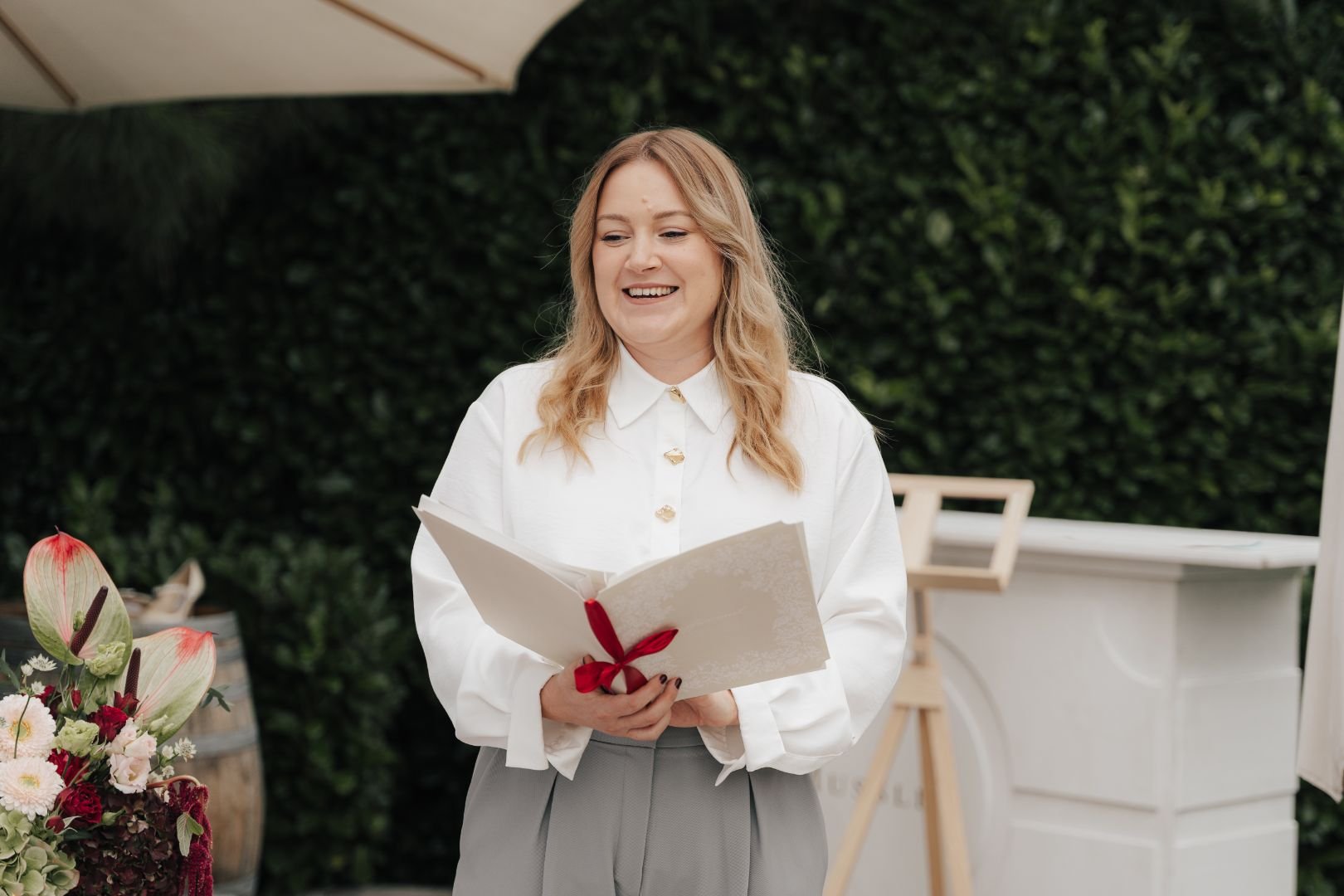 Ich nehme mir Zeit für euch, höre genau hin und bringe Struktur in all das, was euch ausmacht. Am Hochzeitstag könnt ihr euch fallen lassen – ich sorge für den Rahmen, die Worte und die Emotionen eurer Zeremonie. Souverän, entspannt und mit viel Herz.