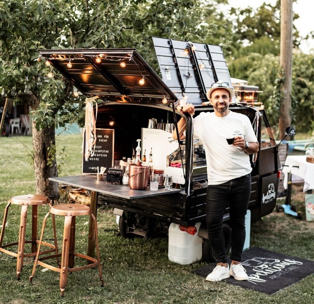 Unsere liebevoll restaurierte Ape ist ein echter Hingucker und verwöhnt eure Gäste mit frisch zubereiteten Kaffeespezialitäten für