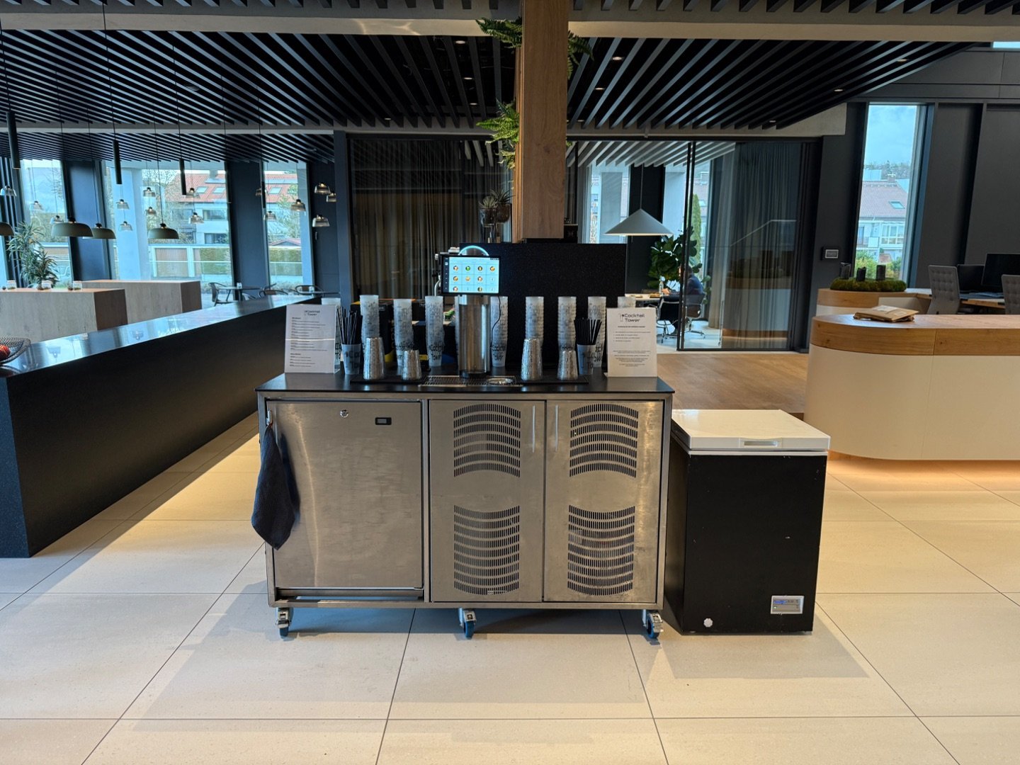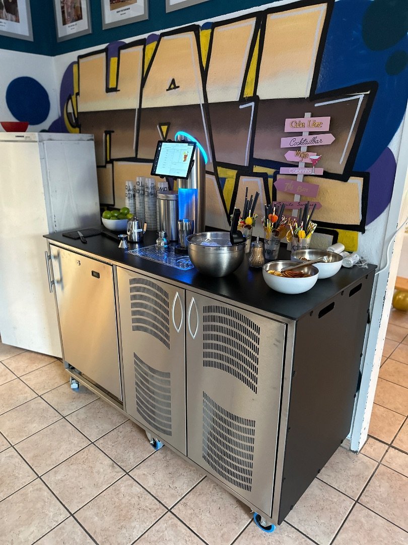 Das Besondere daran ist, dass die Cocktails durch Euch ausgewählt und automatisch gemischt werden. Es wird daher kein Personal benötigt.