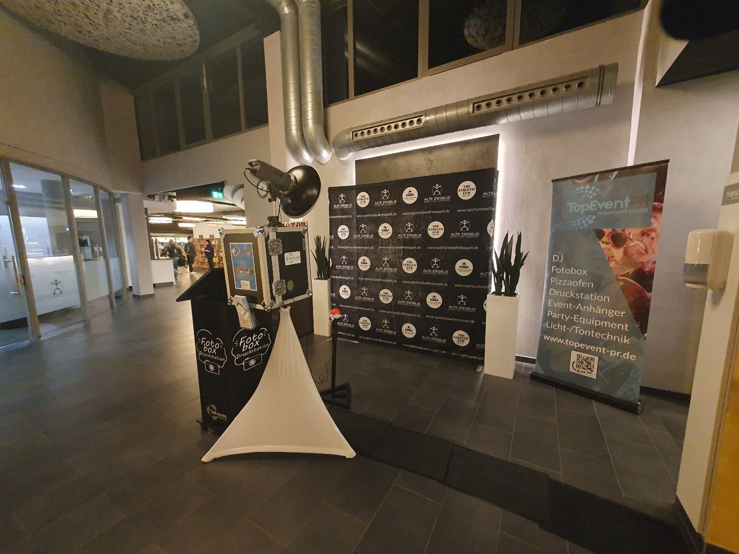Fotobox mit Studioblitz und Spiegelreflexkamera mit Onlinegalerie und Direktzugriff auf die Bilder während der Veranstaltung über Smartphone