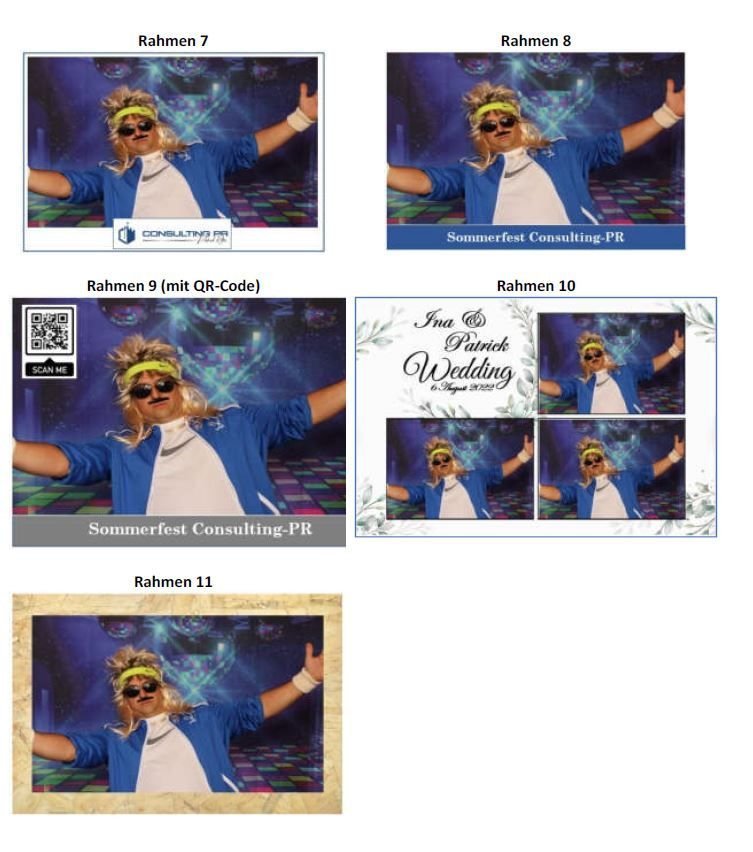 Die Fotobox können sie individuell zusammenstell. Grundausstattung ist die Fotobox mit einer Onlinegalierie für den Zugriff auf die Bilder nach er Feier und einen direktn zugriff über das Smartphone auf der Veranstaltung. Zusätzlich können folgende Komponenten optional dazugebucht werden: