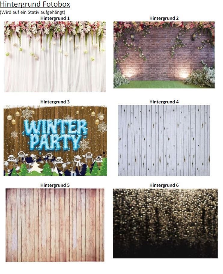 Hintergrundstativ mit verschiedenen Motiven. Es ist auch möglich nach Absprache individuelle Hintergründe auszuwählen. Die geamte Auswahl steht auf: https://topevent-pr.de/hintergrund/ zur Verfügung.