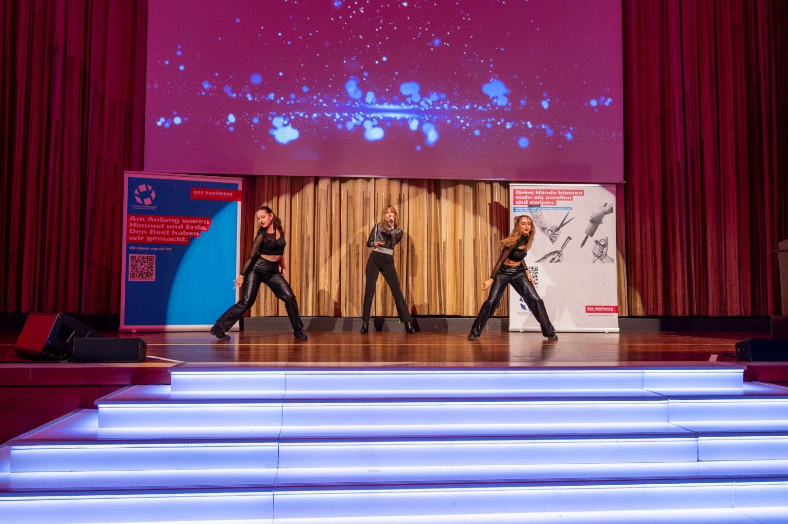 Darüber hinaus ist sie im Trio- oder Bandformat buchbar und bietet exklusive Show-Performances gemeinsam mit zwei Tänzerinnen an. Ihre Vielseitigkeit ermöglicht individuelle, maßgeschneiderte Angebote für jedes Event und jeden Veranstalter.