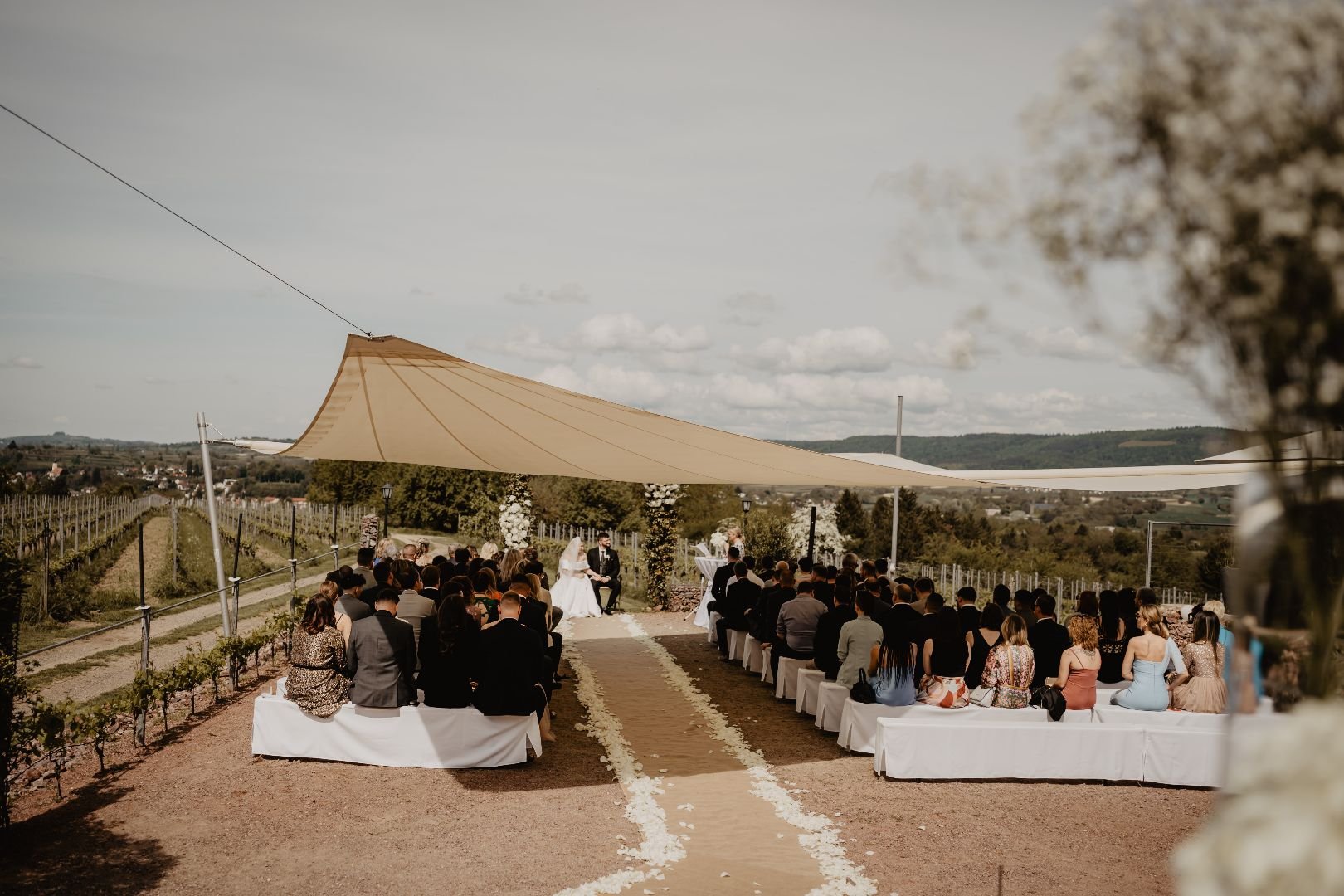 Genießen Sie den atemberaubenden Blick über die Rheinebene, die Weinberge und den Schwarzwald, während Sie Ihre Feier in einer stilvollen und eleganten Atmosphäre gestalten.