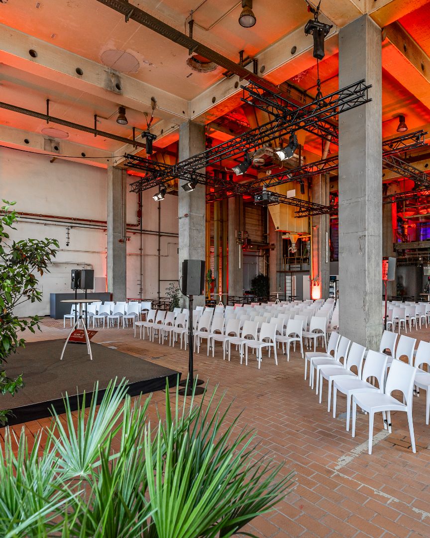 Auf 600 qm bietet die zentral gelegene Veranstaltungsfläche Platz für alle Arten von Events: Business, Kunst und Kultur, Hochzeiten. Auch Film und Fotoshootings finden hier einen spannenden Rahmen.