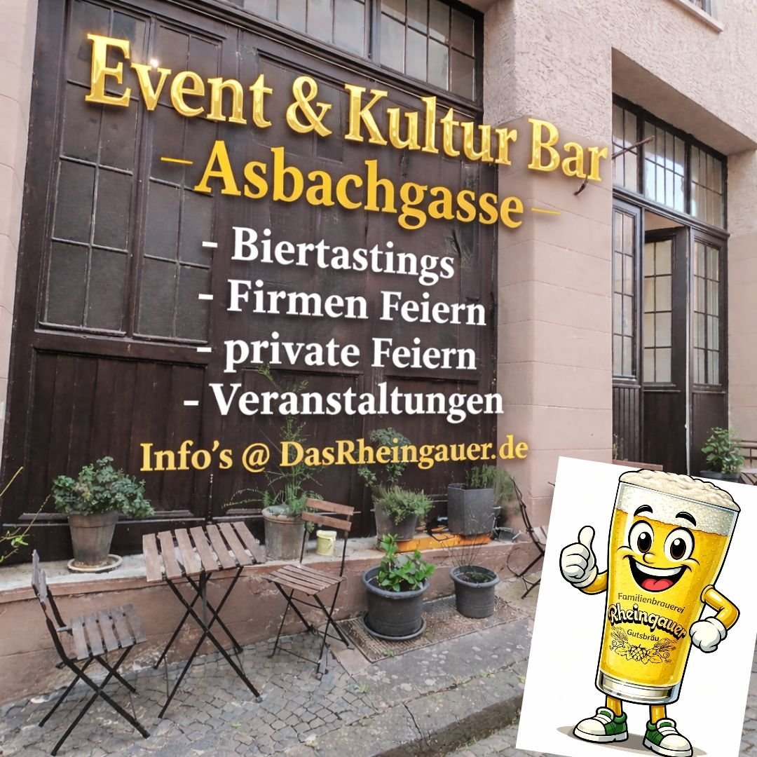 Die Familienbrauerei Rheingauer Gutsbräu bietet Ihnen hier ein umfangreiches Angebot. Unsere Location auf dem historischen Asbachgelände hat einen ganz besonderen Charme. Unser Raum bietet alles was man braucht. Bestuhlung, Thekenbereich mit Kühlschrank, Spühle und Spühlmaschiene, Gläser. Wir bieten auch Getränke wie Softdrinks, Biere aus unserer regionalen Brauerei, Weine etc an. Es kann sogar Ton und Lichttechnik mit angemietet werden. Wir bieten Platz von 30 bis 150 Personen. Es gibt auch Außenbestulung.